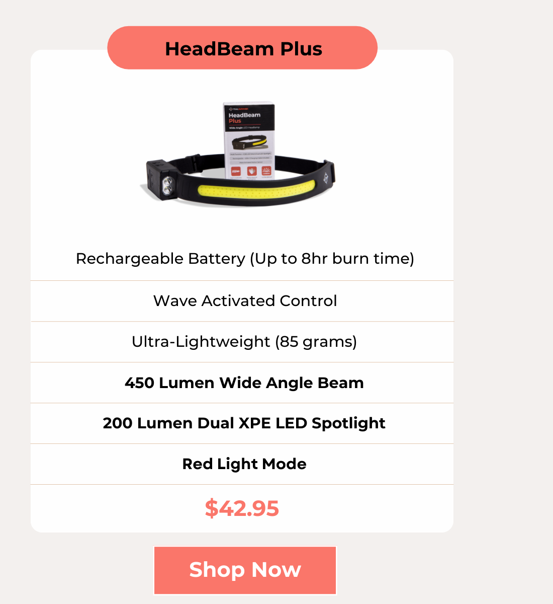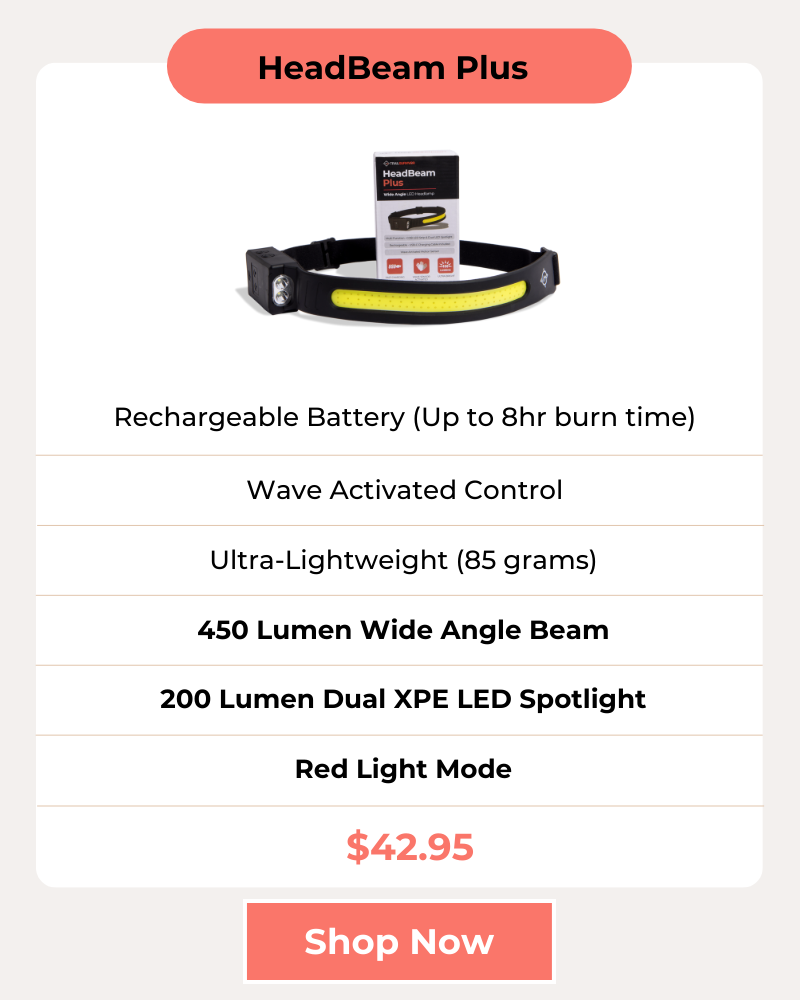 IPX4 Waterproof offers protection from the elements. Red Light Mode (HeadBeam Plus) preserves night-vision and does not attract bugs.